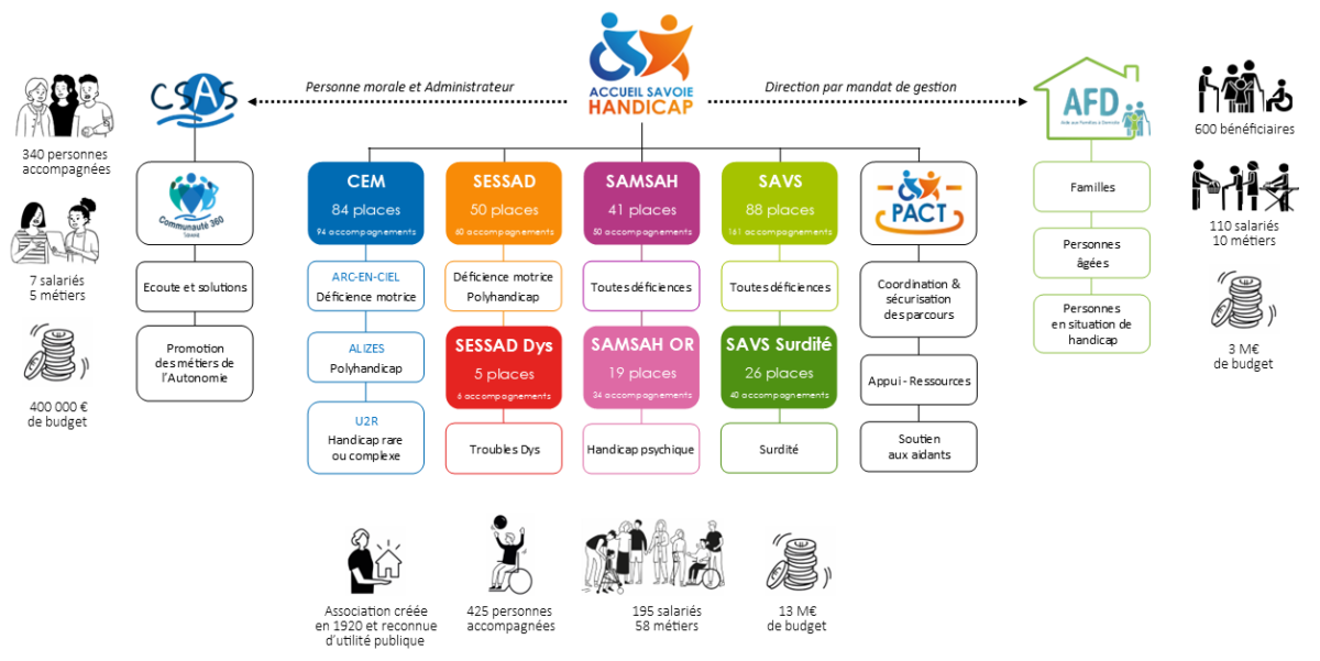 Accueil Savoie Handicap, est une Association reconnue d’utilité publique, régie par la loi de 1901. Sa vocation initiale était d’accueillir et de soigner des personnes atteintes de tuberculose. Elle accompagne enfants, adolescents et adultes en situation de handicap dans leurs projets de vie grâce à des structures et services adaptés aux différentes situations.