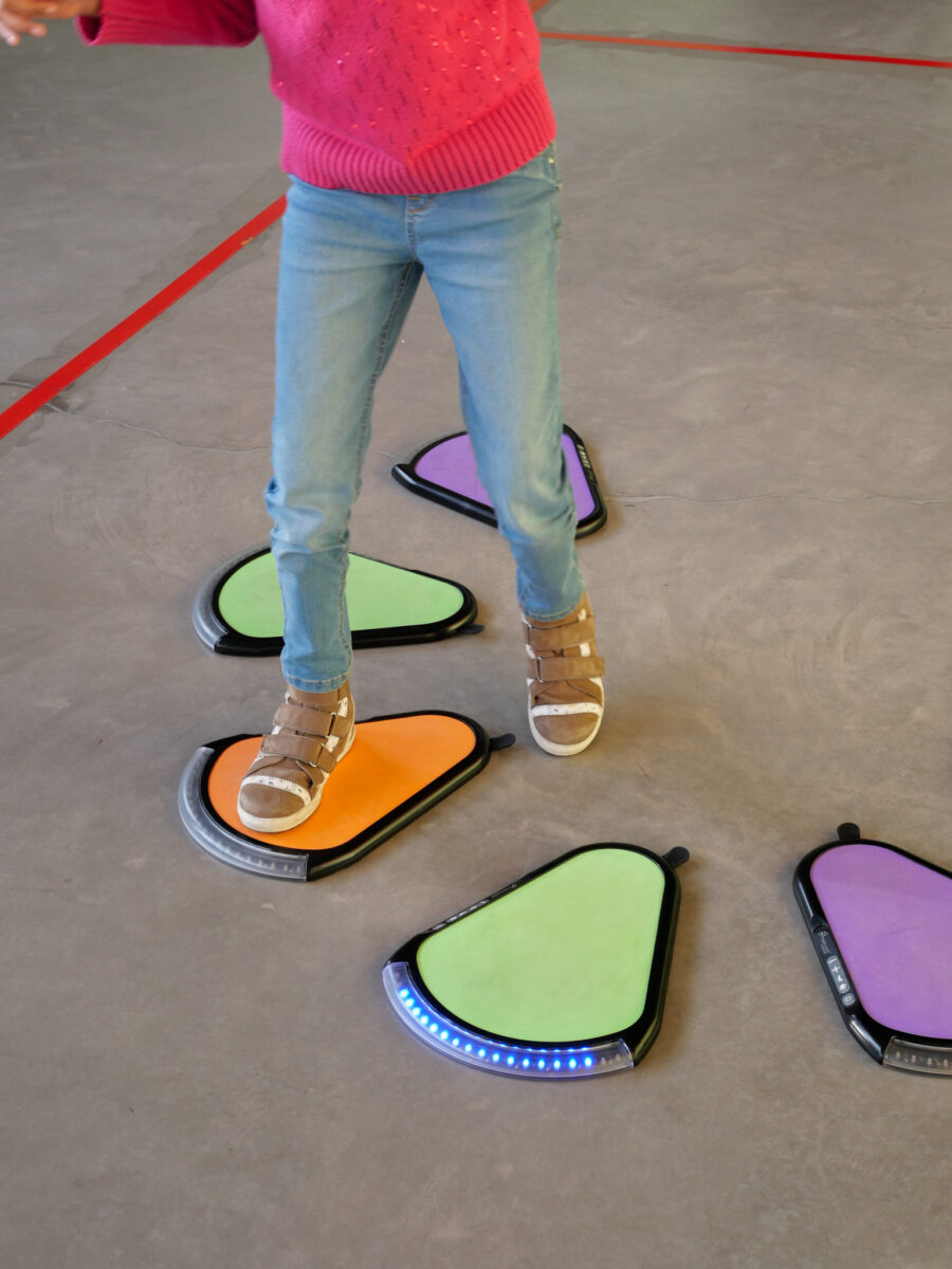 Les jeunes ont ensuite réfléchi ensemble au matériel qu’ils souhaiteraient acquérir pour leurs activités sportives et de rééducation. Ils ont fait le choix des Treax Pads, un dispositif interactif conçu pour améliorer l’équilibre, la coordination, la motricité et la réactivité des membres supérieurs et inférieurs. Ces plots colorés réagissent au toucher et permettent de créer des exercices adaptés à différents besoins. Ils rendent l’entraînement ludique tout en soutenant les objectifs de progression et de rééducation physique.