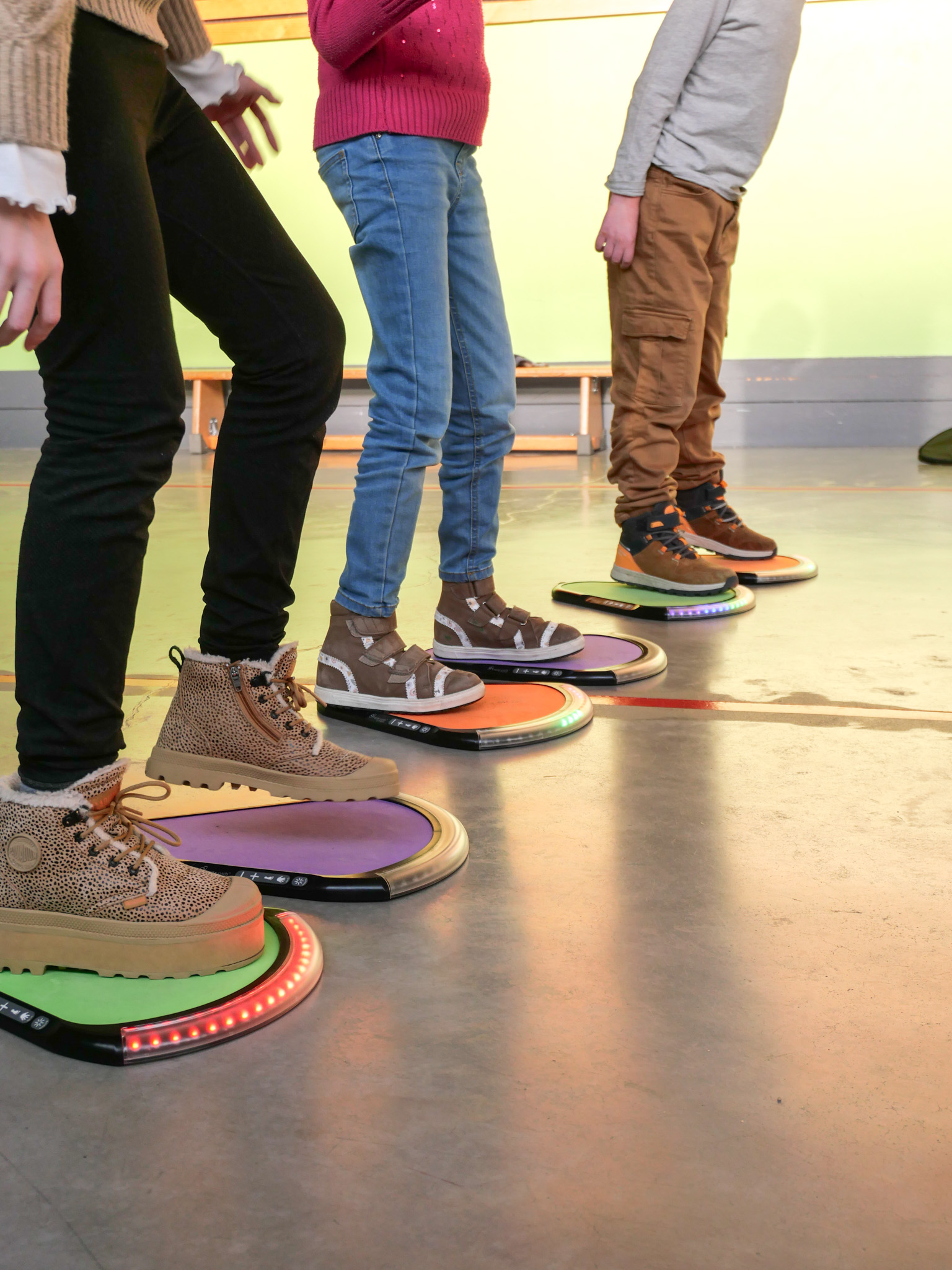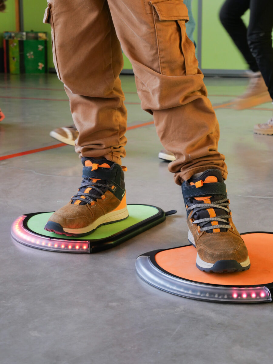 Les jeunes ont ensuite réfléchi ensemble au matériel qu’ils souhaiteraient acquérir pour leurs activités sportives et de rééducation. Ils ont fait le choix des Treax Pads, un dispositif interactif conçu pour améliorer l’équilibre, la coordination, la motricité et la réactivité des membres supérieurs et inférieurs. Ces plots colorés réagissent au toucher et permettent de créer des exercices adaptés à différents besoins. Ils rendent l’entraînement ludique tout en soutenant les objectifs de progression et de rééducation physique.